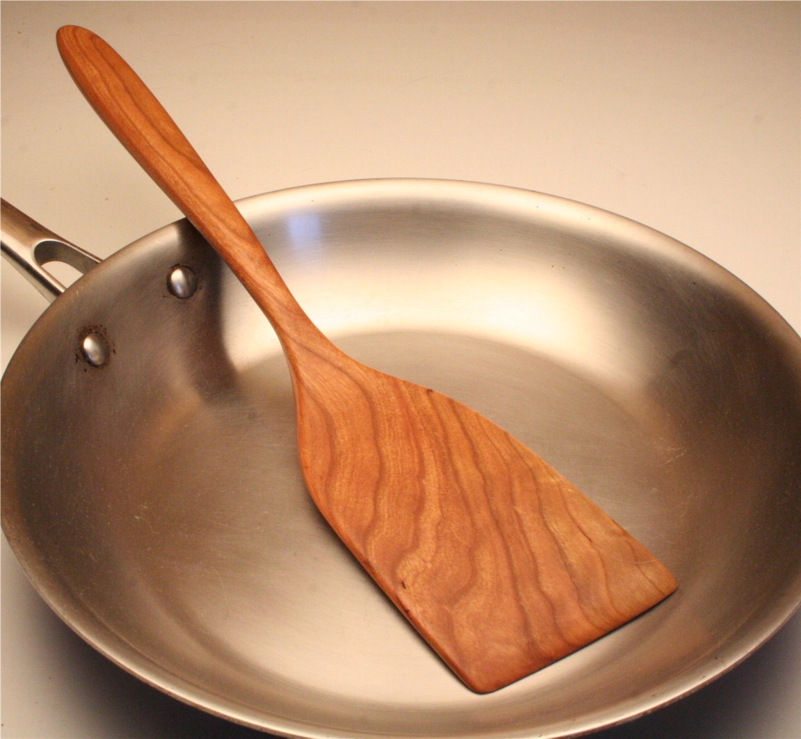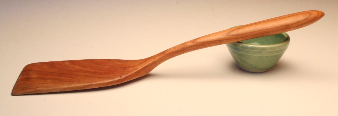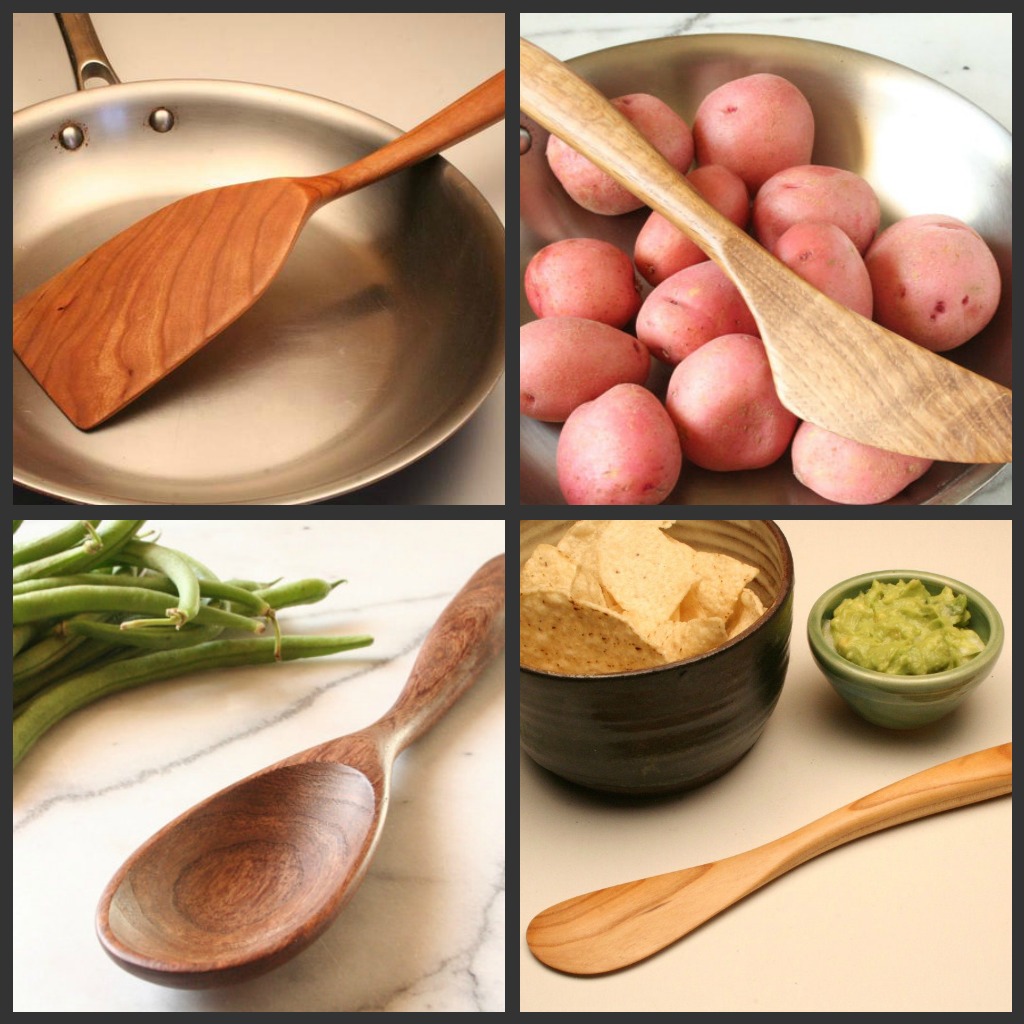 Each of my kitchen tools is unique, just as each piece of wood is different. After they are carved I sand them, raising the grain with hot water in between so they will stay smooth and beautiful in use. Then they are bathed in hot mineral oil and Beeswax and then polished.